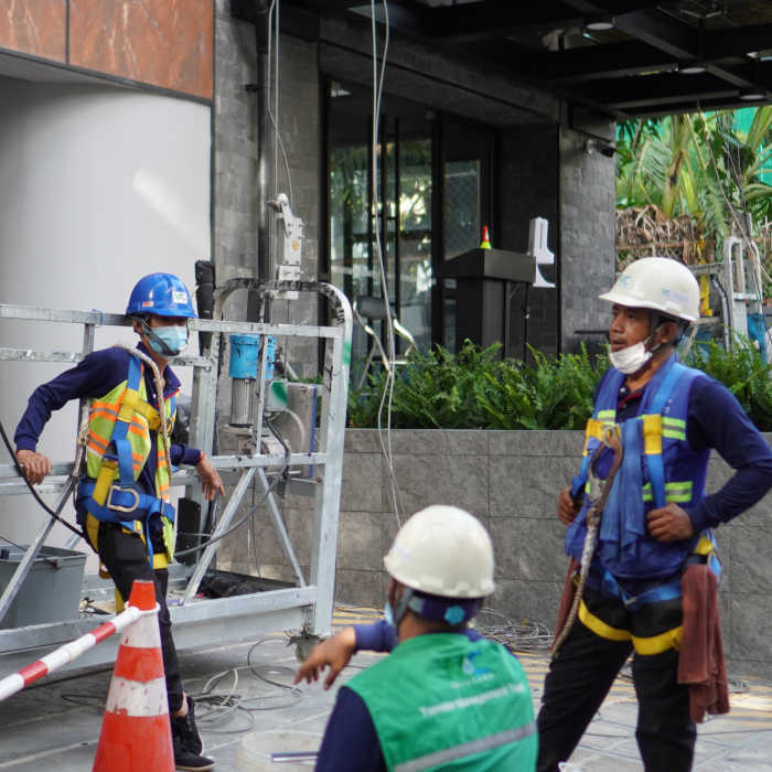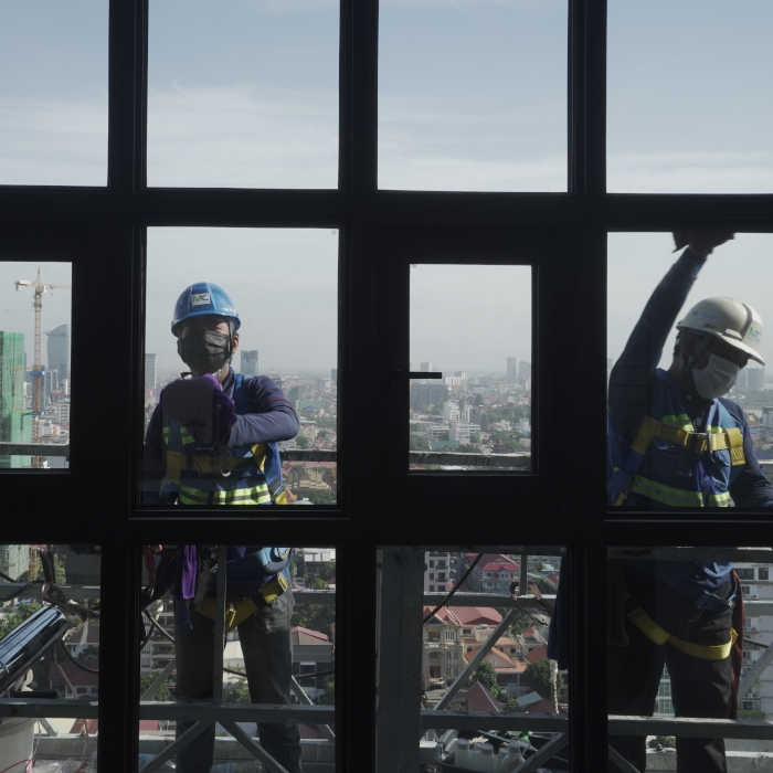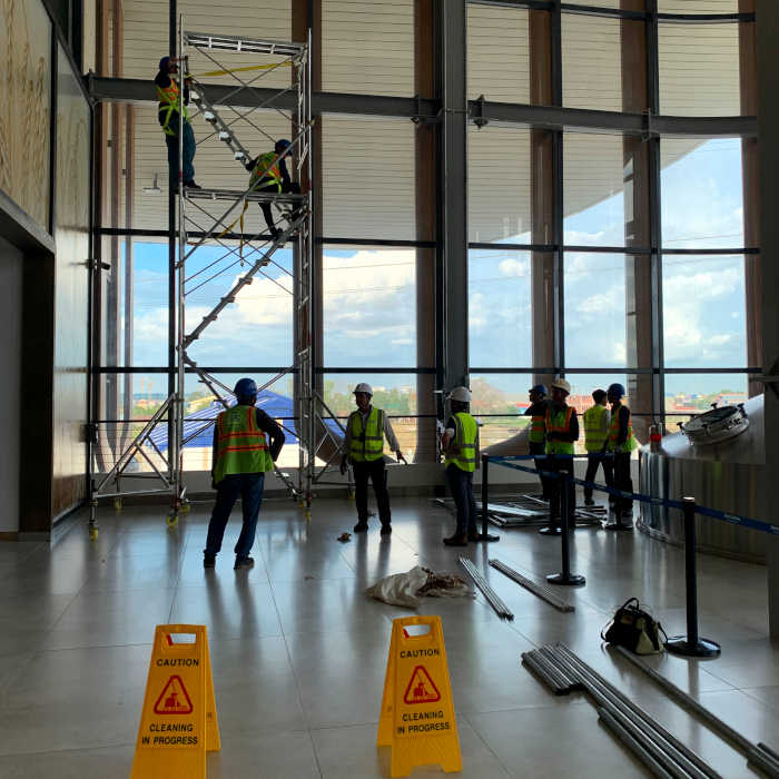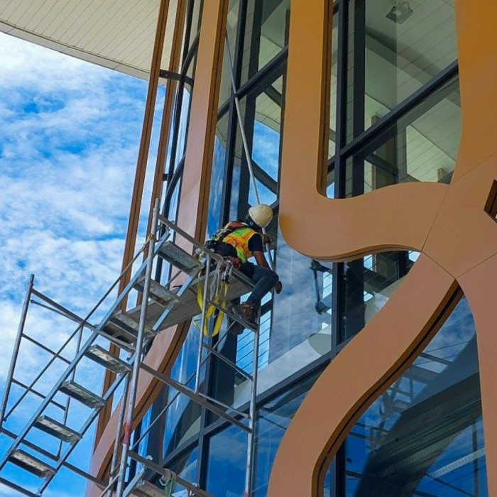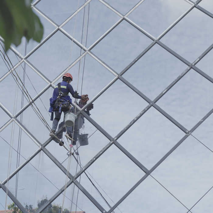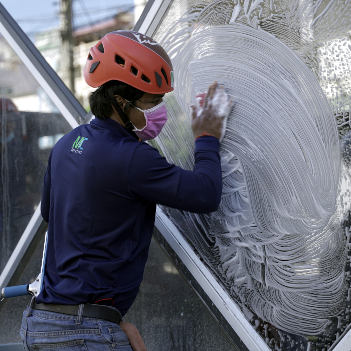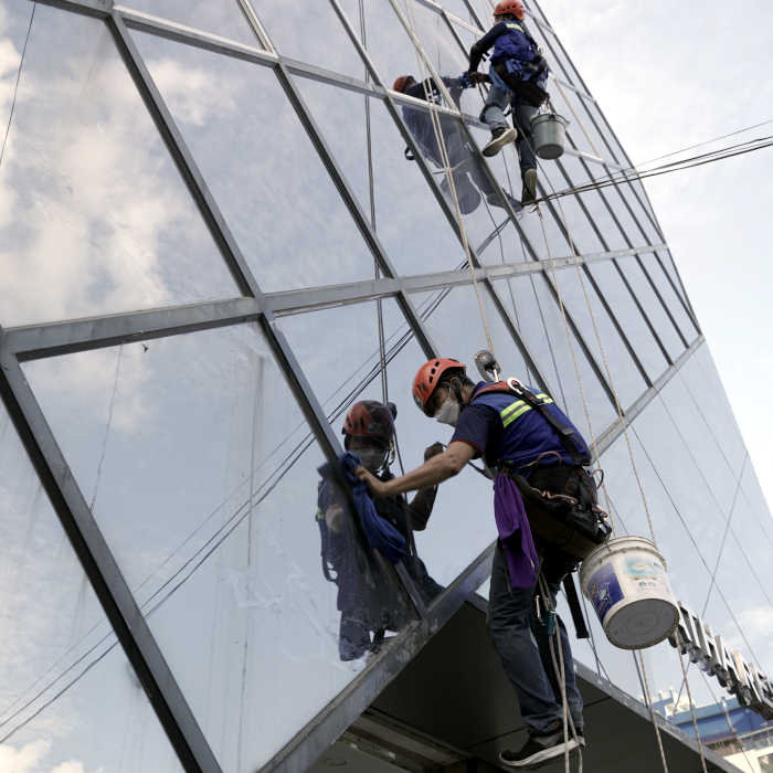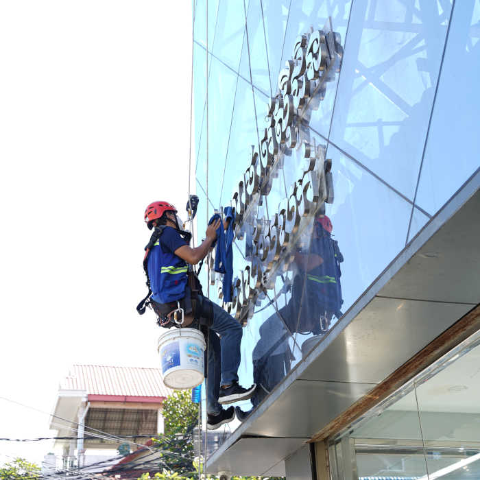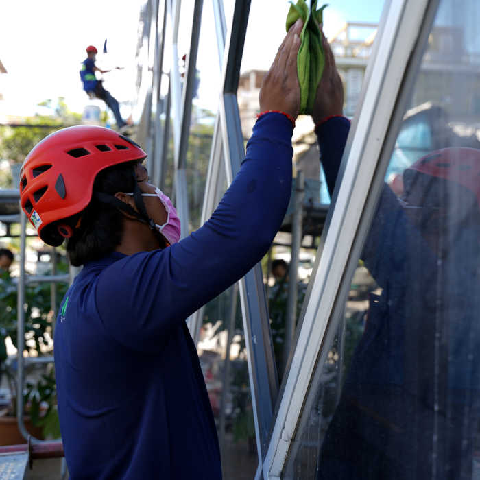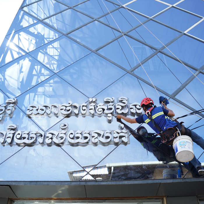 សម្អាត​កញ្ចក់​អគារ​នៅ CMED Cambodia