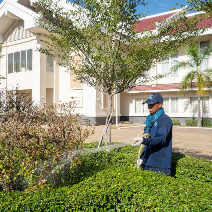 ក្រុម​ហ៊ុន MC Services បាន​ផ្តល់​សេវាកម្ម​ការពារ​សត្វកណ្តៀរ​ដោយវិធាន​ស្រោច​ទឹកថ្នាំ​លើ​ដី និងរៀបចំ​ប្រព័ន្ធ​ទុយោ​នៅ SH Condo ប្រទេស​កម្ពុជា។