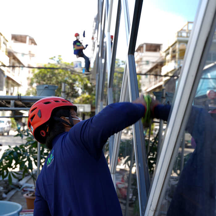 ក្រុមហ៊ុន MC Services បាន​ផ្តល់​សេវាកម្ម​សម្អាត​កញ្ចក់​នៅ Natha Residence ប្រទេស​កម្ពុជា។